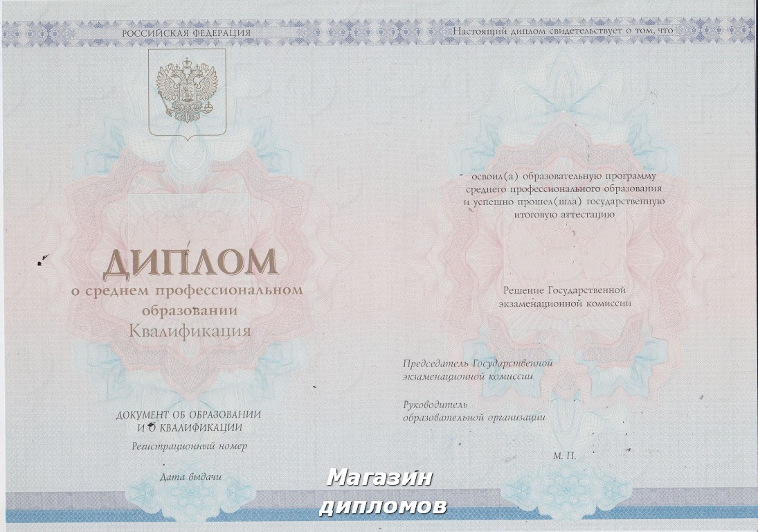 ДИПЛОМ О СРЕДНЕМ ПРОФЕССИОНАЛЬНОМ ОБРАЗОВАНИИ​ С 2011 ПО 2013 ГОД